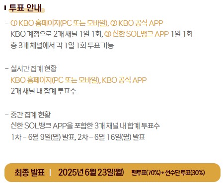 | KBO 공식 앱 | 1일 1회 | 앱에서 바로 투표, 푸시 알림 제공 |