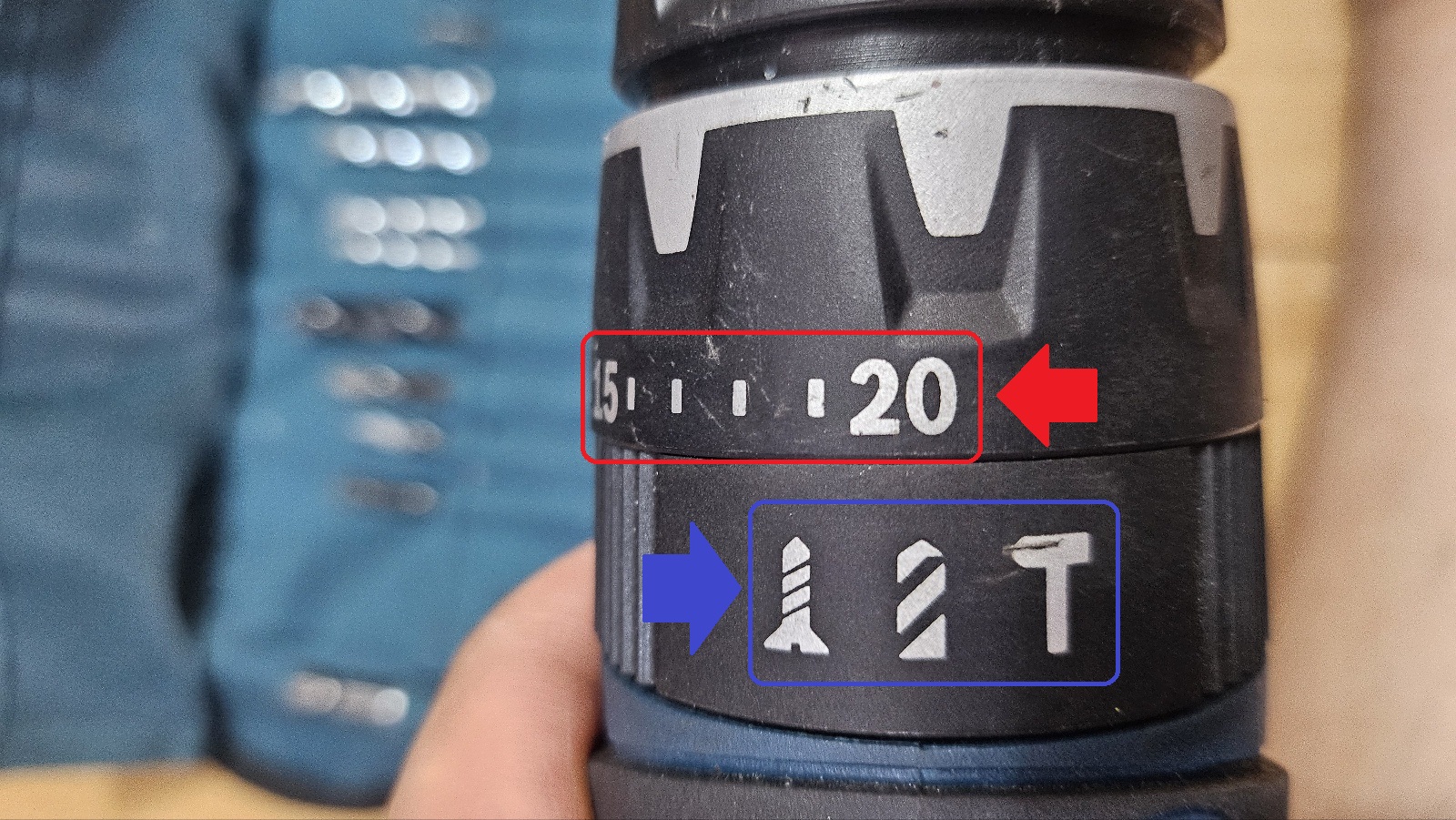 보쉬 드릴을 보면 1부터 간격을 두고 20까지 숫자가 표시된 부분이 있습니다. 무슨 의미일까요? 드릴 속도입니다. 1이 가장 느리고 20이 가장 빠른 속도입니다. 그리고 아래를 보면 3개의 그림이 있습니다. 드릴을 사용하는 모드입니다. 왼쪽부터 드라이버 모드, 드릴 모드, 해머드릴 모드입니다. 두 레버 모두 좌우로 돌려서 중앙에 위치시키면 해당 속도와 모드를 사용할 수 있습니다.