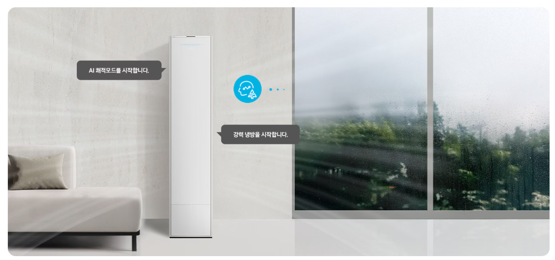 - AI 쾌적 모드: 고성능 인공지능이 사용자의 일상생활 패턴과 실내외 환경 데이터를 심층 분석하여, 개인화된 최적의 냉방 환경과 깨끗한 공기 상태를 자동으로 구현합니다.