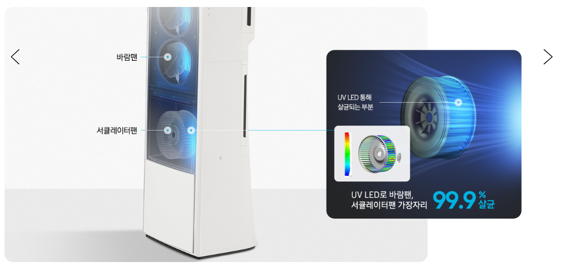 - PM 1.0 필터: 초정밀 필터링 시스템으로 미세먼지와 유해 세균을 완벽하게 제거하여, 실내 전체를 항상 쾌적하고 청정한 상태로 유지합니다.
