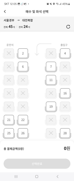 - 버스 좌석 배치도가 나타납니다.