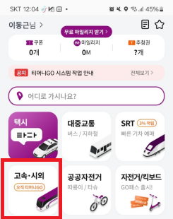 - 앱 메인 화면에서 '고속버스' 메뉴를 찾아 탭합니다.