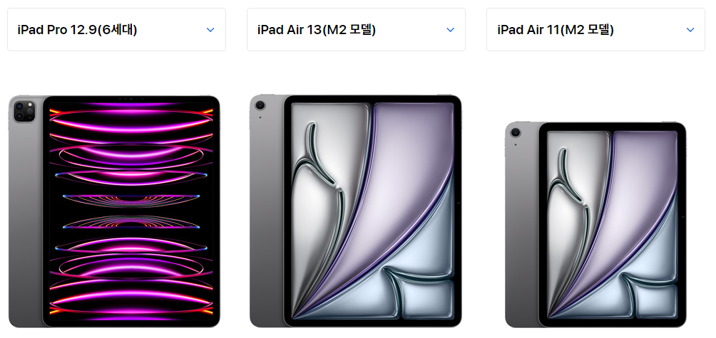 이번 아이패드 에어는 11인치와 13인치 모델이 동시에 출고되었습니다. 지난 세대에서 프로는 13인치로 출시되었고 에어는 11인치로만 출시되어 모든 사양과 스펙은 에어 모델로 만족을 하였지만 화면사이즈가 아쉬웠다면 이번 아이패드 에어 13인치를 구매하시면 좋을 것 같습니다.